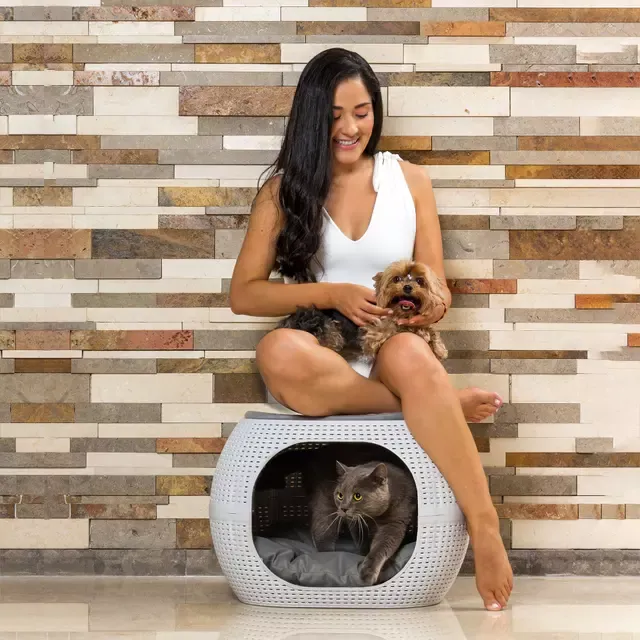 Diseño: Cuenta con un diseño tipo "pet bed" en color wengue (marrón oscuro). Incluye dos cojines acogedores con tela anti-fluido con AquaFobiak®.