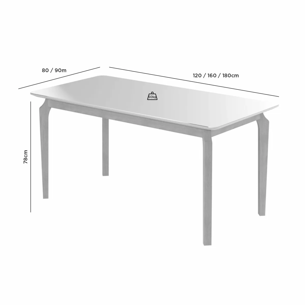 Comedor Alegra 180x90 de Madera Maciza canela y marfil con sobre de Vidrio